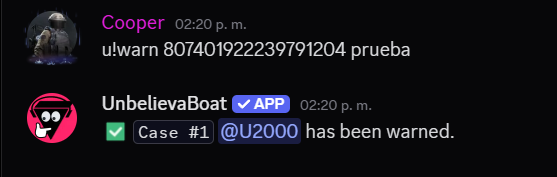 - Sirve para advertir a un usuario que ha infringido las reglas del servidor. La advertencia se registra en su historial y puede influir en futuras sanciones si el comportamiento persiste.